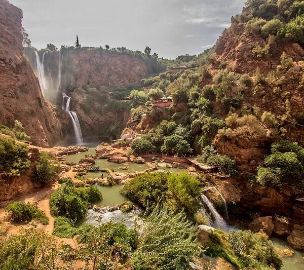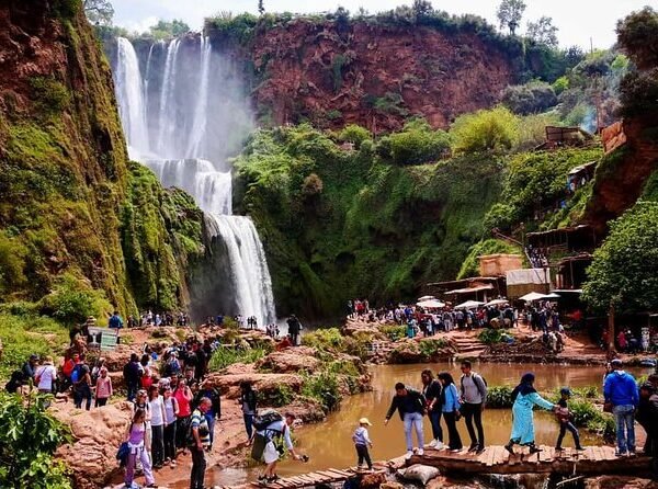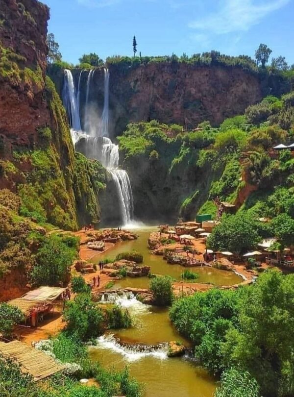 Ouzoud waterfalls excursion. Departure from Marrakech to visit the Ouzoud waterfalls, one of the most beautiful natural sites in Morocco. It is also the highest waterfall in North Africa, peaking at 100 m. To reach this natural point, a hike will take you up and down, amidst macaques, allowing you to admire the contrast of colors with the surrounding landscapes. Lunch at the restaurant facing the waterfalls. After a day of discovering the waterfalls, return to Marrakech.